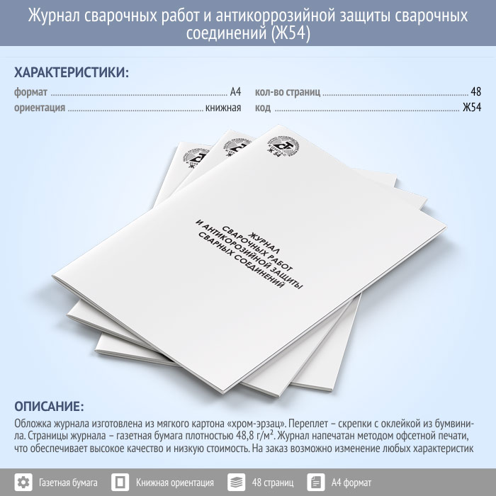 Журнал сварочных работ и антикоррозийной защиты сварочных соединений (48 стр., Ж54) в Химках купить