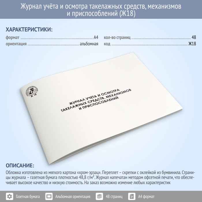 Журнал учета и осмотра такелажных средств, механизмов и приспособлений (48 стр., Ж18) в Химках купить