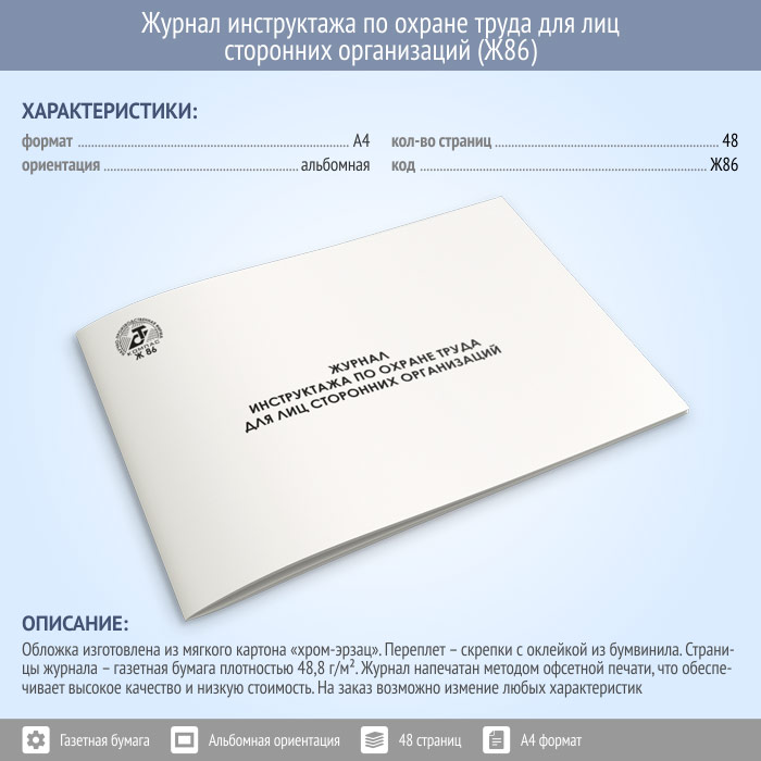 Журнал инструктажа по охране труда для лиц сторонних организаций (48 стр., Ж86) в Химках купить