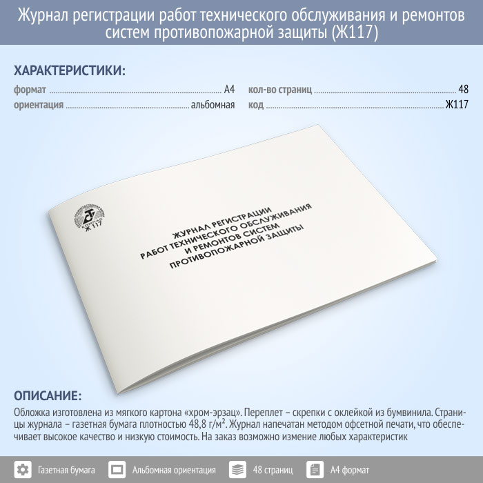 Журнал регистрации работ технического обслуживания и ремонтов систем противопожарной защиты (48 стр., Ж117) в Химках купить