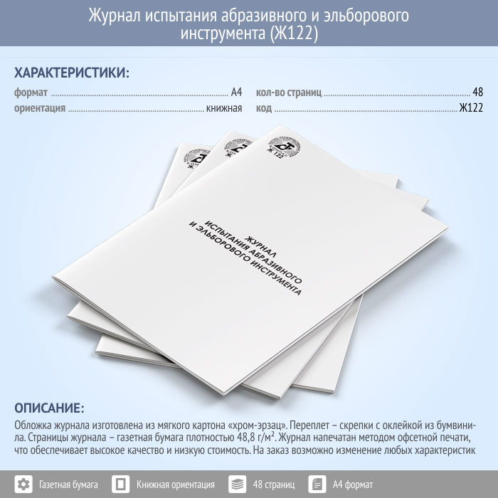Журнал испытания абразивного и эльборового инструмента (48 стр., Ж122) в Химках купить