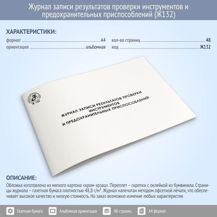 Журнал записи результатов проверки инструментов и предохранительных приспособлений (48 стр., Ж132) в Химках купить