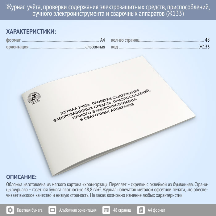 Журнал учета проверки и содержания электрозащитных средств, приспособлений, ручного электроинструмента и сварочных аппаратов (48 стр., Ж133) в Химках купить