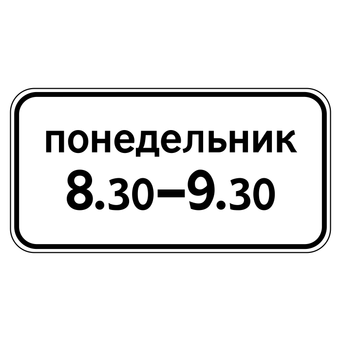 Дорожный знак 8.5.7 «Время действия» (металл 0,8 мм, III типоразмер: 450х900 мм, С/О пленка: тип А инженерная) в Химках купить