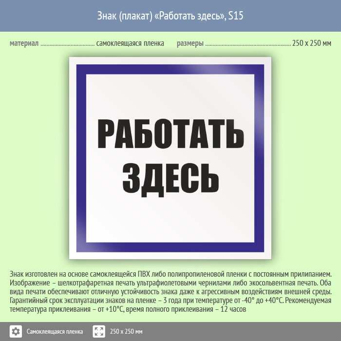 Знак (плакат) «Работать здесь», S15 (пленка, 250х250 мм) в Химках купить