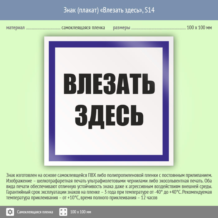 Знак (плакат) «Влезать здесь», S14 (пленка, 100х100 мм) в Химках купить