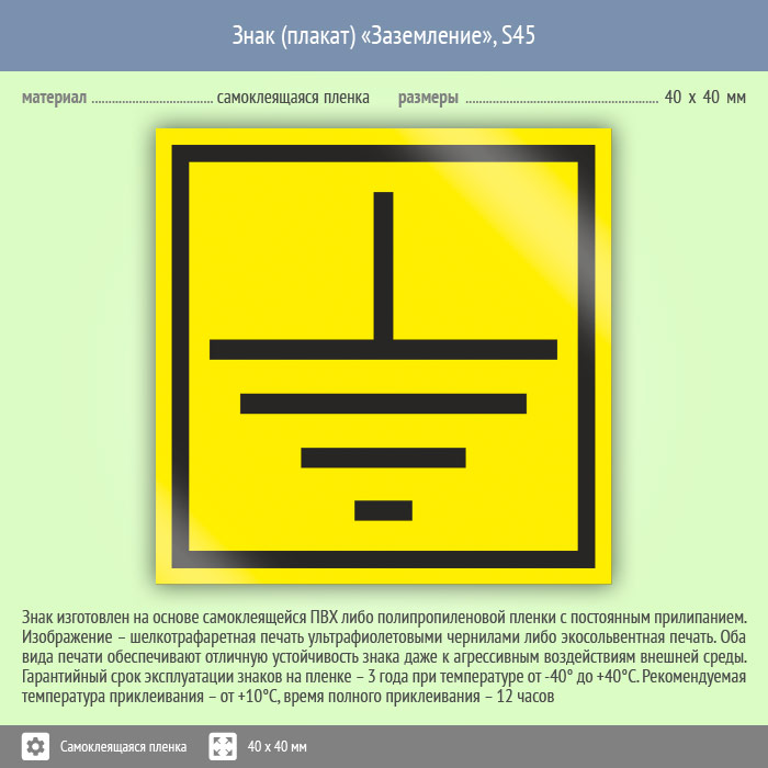 Знак (плакат) «Заземление», S45 (25 штук пленка, 40х40 мм) в Химках купить