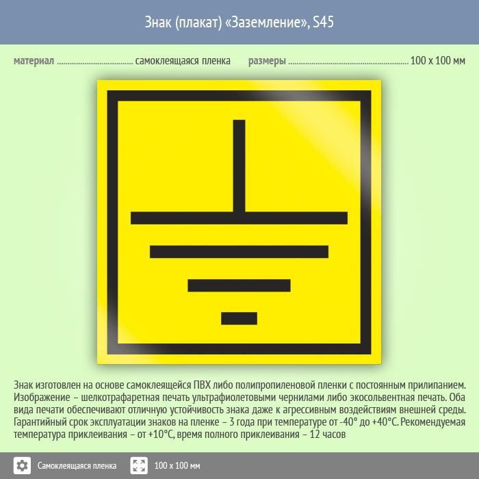 Знак (плакат) «Заземление», S45 (пленка, 100х100 мм) в Химках купить