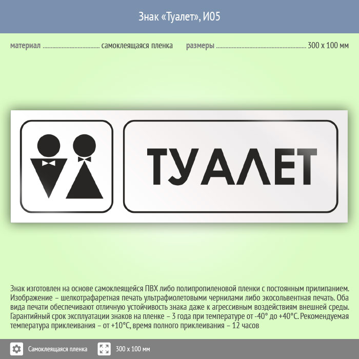 Знак «Туалет», И05 (пленка, 300х100 мм) в Химках купить