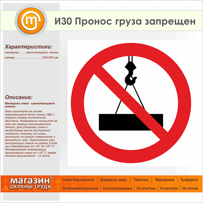 Знак «Пронос груза запрещен», И30 (пленка, 300х300 мм) в Химках купить