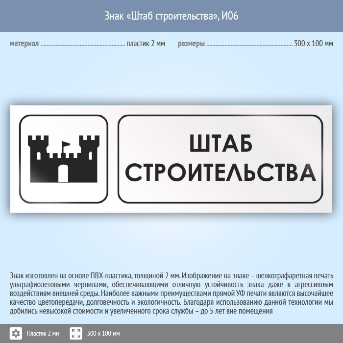 Знак «Штаб строительства», И06 (пластик, 300х100 мм) в Химках купить