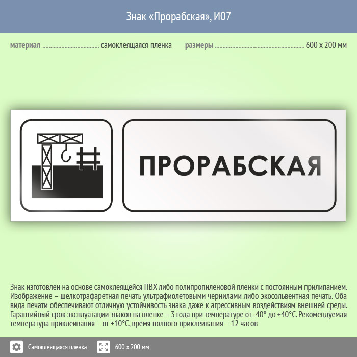 Знак «Прорабская», И07 (пленка, 600х200 мм) в Химках купить