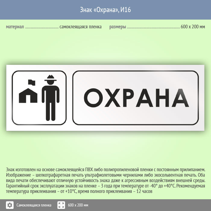 Знак «Охрана», И16 (пленка, 600х200 мм) в Химках купить