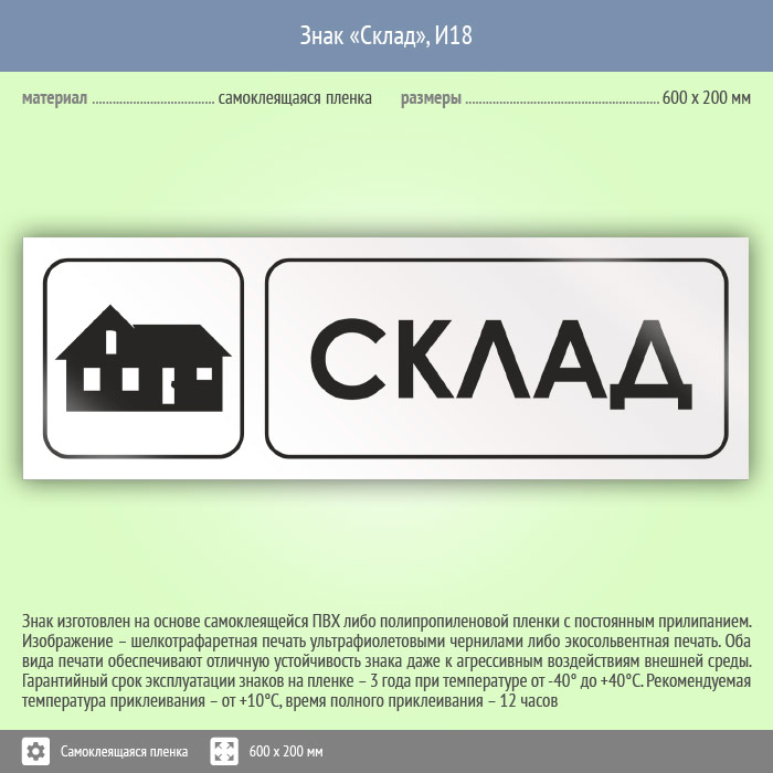 Знак «Склад», И18 (пленка, 600х200 мм) в Химках купить