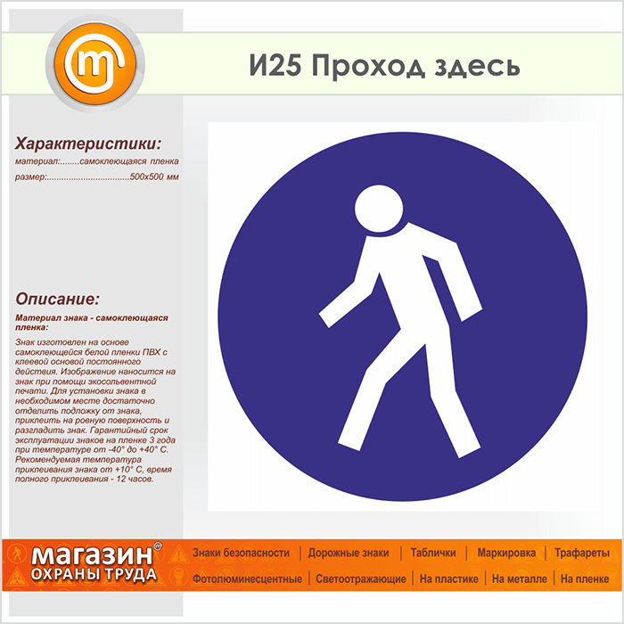 Знак «Проход здесь», И25 (пленка, 500х500 мм) в Химках купить