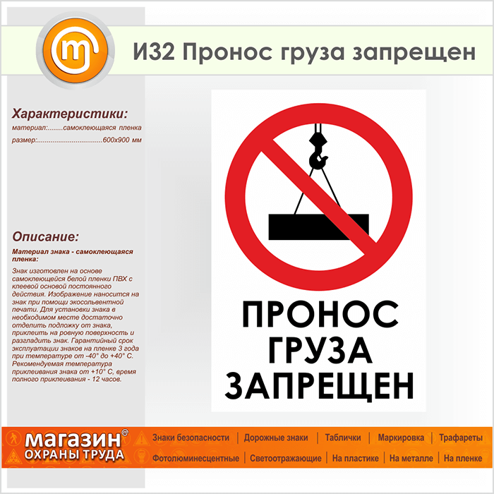 Знак «Пронос груза запрещен», И32 (пленка, 600х900 мм) в Химках купить