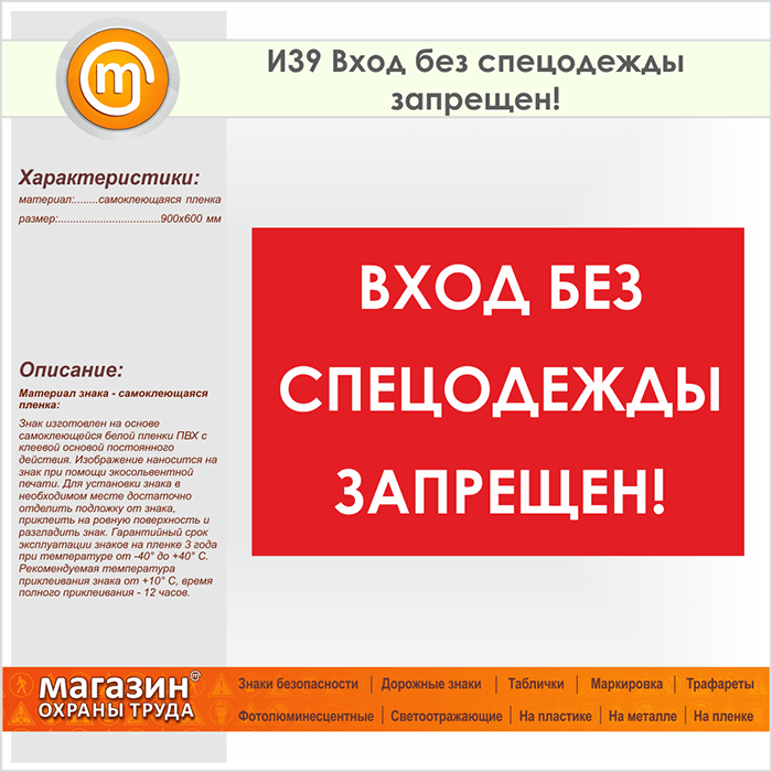 Знак «Вход без спецодежды запрещен!», И39 (пленка, 900х600 мм) в Химках купить