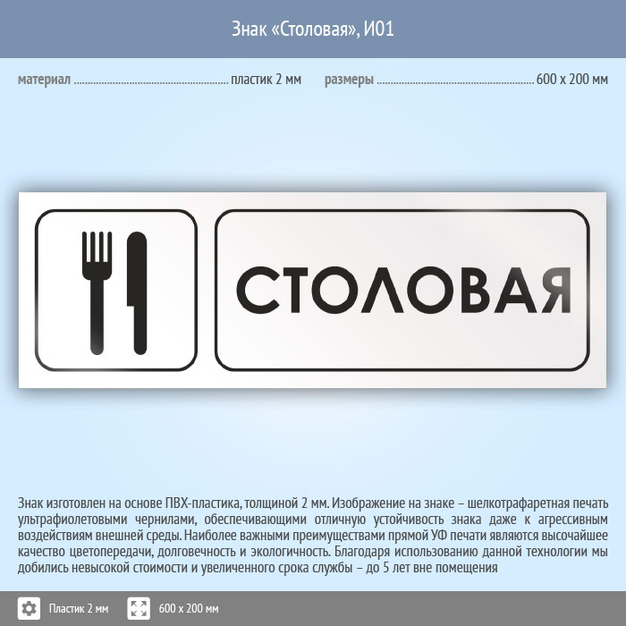 Знак «Столовая», И01 (пластик, 600х200 мм) в Химках купить