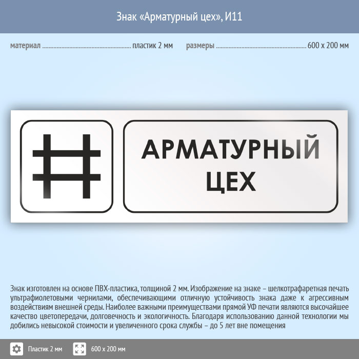 Знак «Арматурный цех», И11 (пластик, 600х200 мм) в Химках купить
