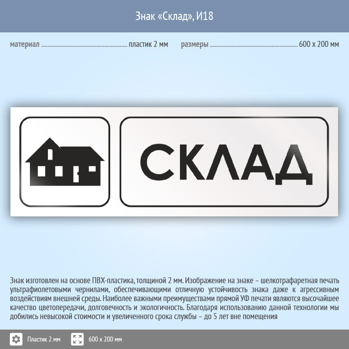 Знак «Склад», И18 (пластик, 600х200 мм) в Химках купить