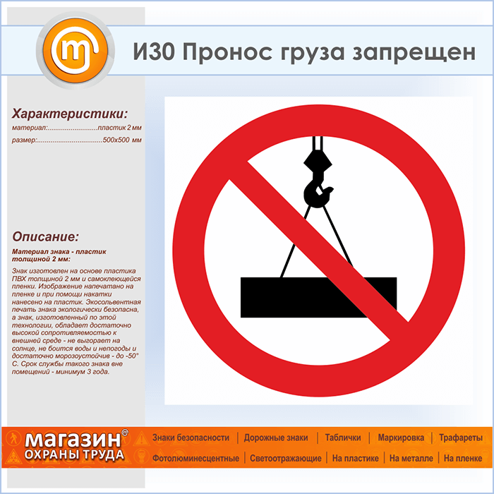 Знак «Пронос груза запрещен», И30 (пластик, 500х500 мм) в Химках купить