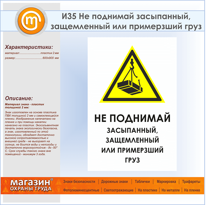 Знак «Не поднимай засыпанный, защемленный или примерзший груз», И35 (пластик, 600х900 мм) в Химках купить