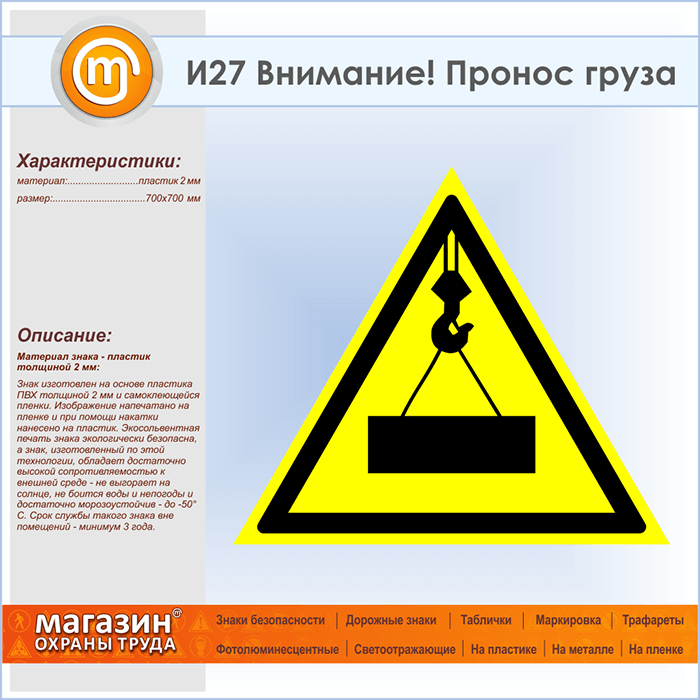 Знак «Внимание! Пронос груза», И27 (пластик, сторона 700 мм) в Химках купить