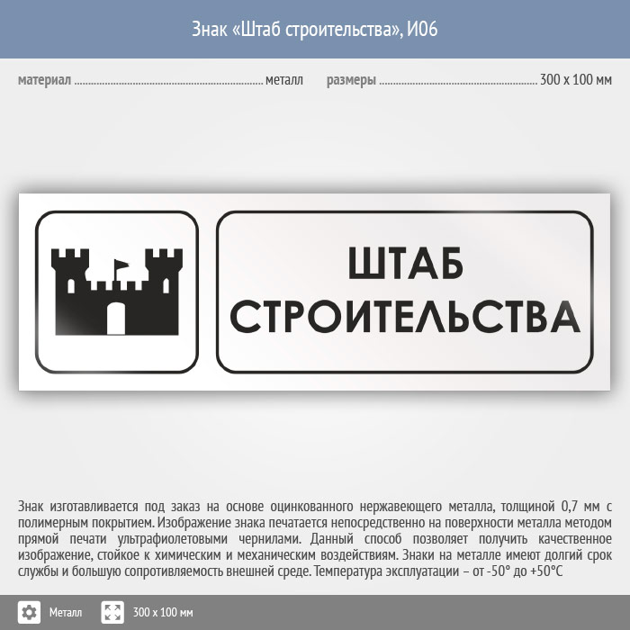 Знак «Штаб строительства», И06 (металл, 300х100 мм) в Химках купить