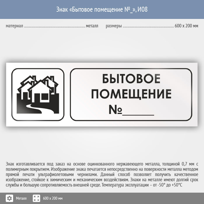 Знак «Бытовое помещение №_», И08 (металл, 600х200 мм) в Химках купить