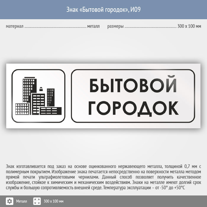 Знак «Бытовой городок», И09 (металл, 300х100 мм) в Химках купить