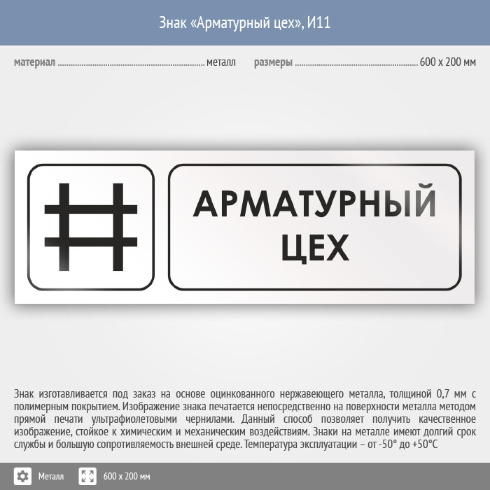 Знак «Арматурный цех», И11 (металл, 600х200 мм) в Химках купить