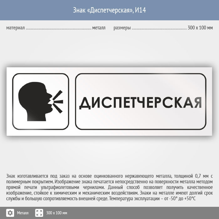 Знак «Диспетчерская», И14 (металл, 300х100 мм) в Химках купить