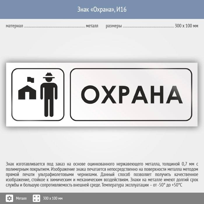 Знак «Охрана», И16 (металл, 300х100 мм) в Химках купить