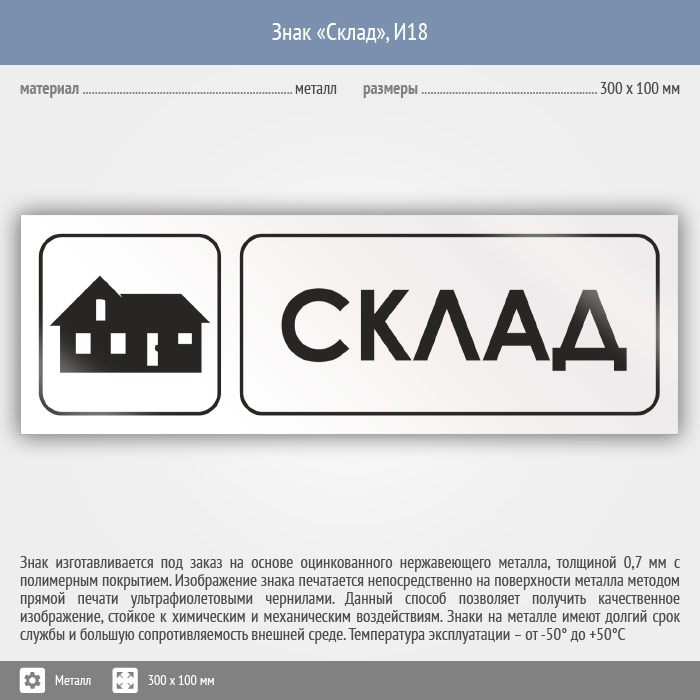 Знак «Склад», И18 (металл, 300х100 мм) в Химках купить