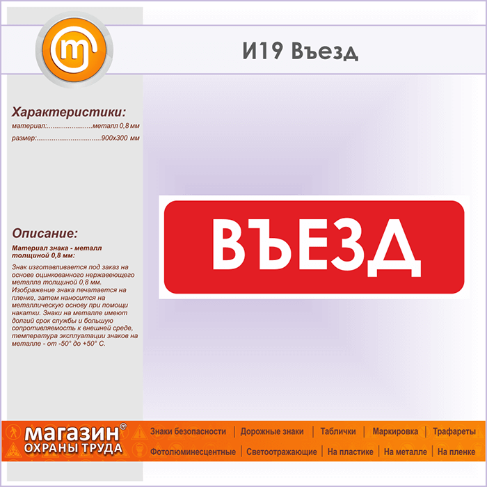 Знак «Въезд», И19 (металл, 900х300 мм) в Химках купить