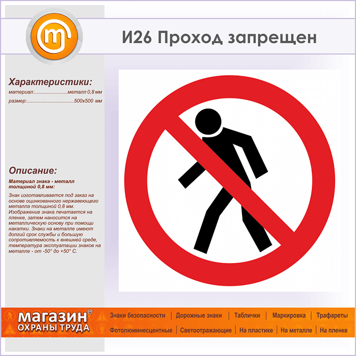 Знак «Проход запрещен», И26 (металл, 500х500 мм) в Химках купить