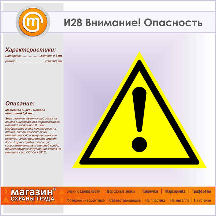 Знак «Внимание! Опасность», И28 (металл, сторона 700 мм) в Химках купить