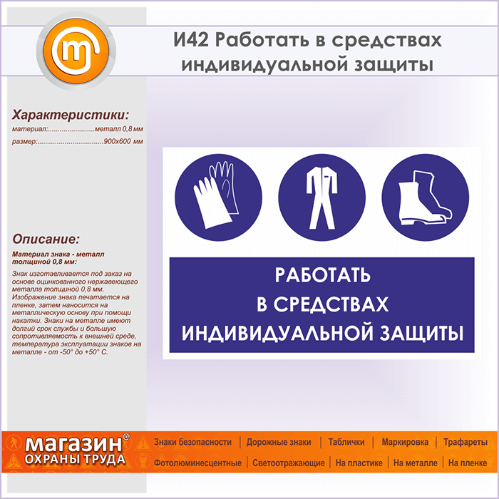 Знак «Работать в средствах индивидуальной защиты», И42 (металл, 900х600 мм) в Химках купить