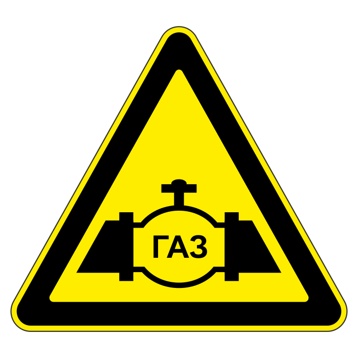Знак «Осторожно газопровод», МГ-2 (металл 0,8 мм, II типоразмер: сторона 900 мм, С/О пленка: тип В алмазная) в Химках купить
