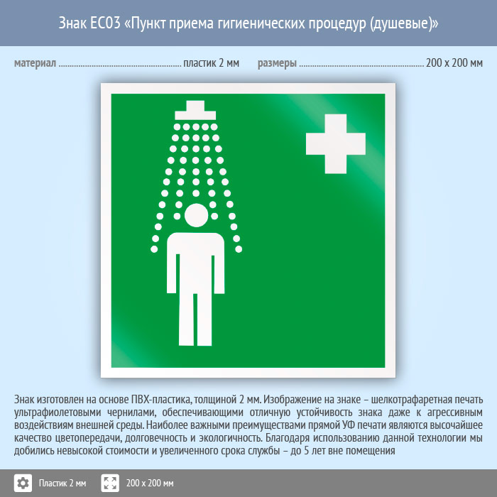 Знак EC03 «Пункт приема гигиенических процедур (душевые)» (пластик, 200х200 мм) в Химках купить