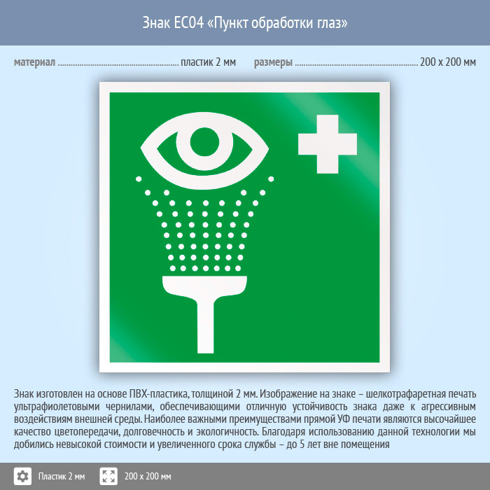Знак EC04 «Пункт обработки глаз» (пластик, 200х200 мм) в Химках купить