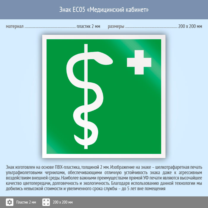 Знак EC05 «Медицинский кабинет» (пластик, 200х200 мм) в Химках купить