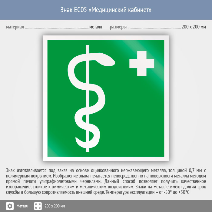 Знак EC05 «Медицинский кабинет» (металл, 200х200 мм) в Химках купить