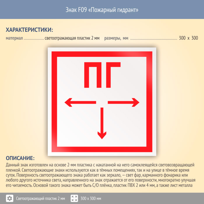 Знак F09 «Пожарный гидрант» (светоотражающий пластик, 300х300 мм) в Химках купить