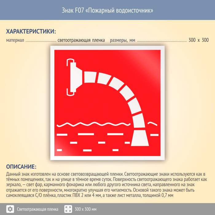 Знак F07 «Пожарный водоисточник» (светоотражающая пленка, 300х300 мм) в Химках купить