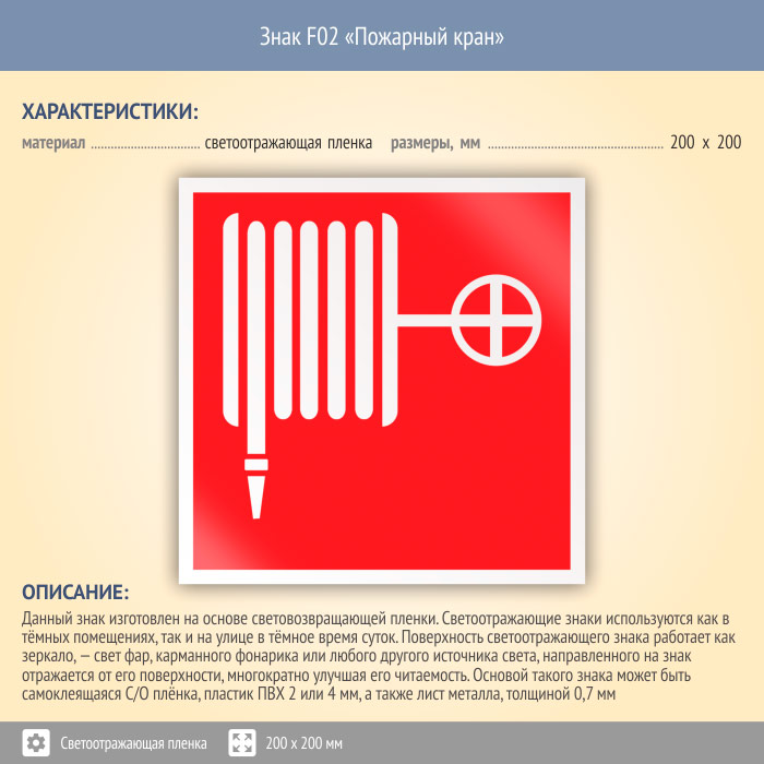 Знак F02 «Пожарный кран» (светоотражающая пленка, 200х200 мм) в Химках купить