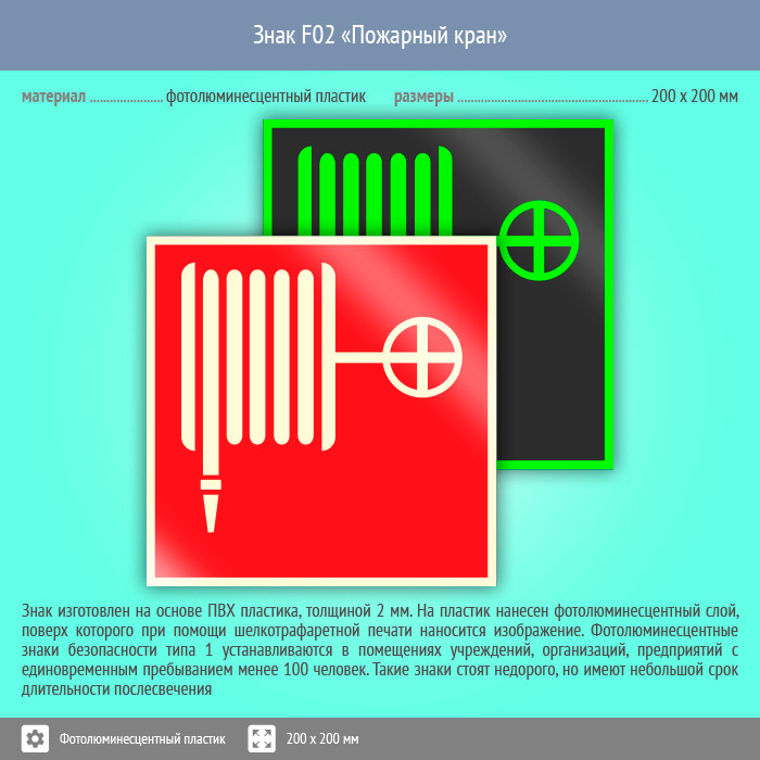 Знак F02 «Пожарный кран» (фотолюминесцентный пластик, 200х200 мм) в Химках купить