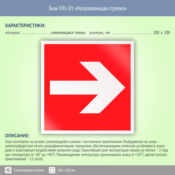 Знак F01-01 «Направляющая стрелка» (пленка, 200х200 мм) в Химках купить