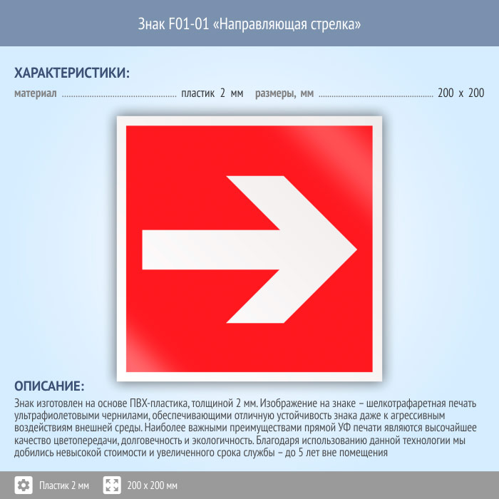 Знак F01-01 «Направляющая стрелка» (пластик, 200х200 мм) в Химках купить