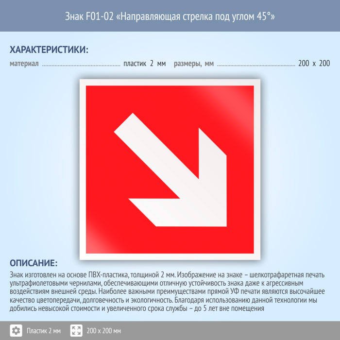 Знак F01-02 «Направляющая стрелка под углом 45°» (пластик, 200х200 мм) в Химках купить